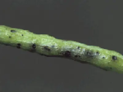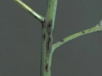 Although the Brassica napus canola variety is less susceptible than Brassica rapa, it can also be affected by Alternaria black spot.
