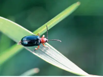 The Cereal Leaf Beetle is an invasive insect that feeds on cereals and grasses.