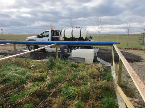The organic mix creates an ideal habitat for microbes to breakdown the herbicide rinsate. The mixture is placed in a lined pit to ensure there is no offsite contamination.
