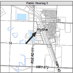 5.The purpose of this amendment is to designate Lot 15 Block E Plan 2522352 within NW-13-73-11-W6 locate on 99 Ave in Hythe from General Industrial (M1) to Rural Industrial Direct Control (RM-DC) to allow for industrial development. File # PLLUB20250597