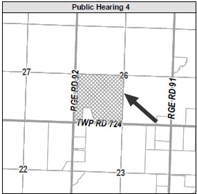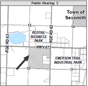 3.The purpose of this amendment is to designate part of NE-10-73-6-W6 located West of RGE RD 62 and South of HWY 672 from Agricultural (AG) to Highway Industrial (RM-4) to accommodate a proposed subdivision. File # PLLUB20250613